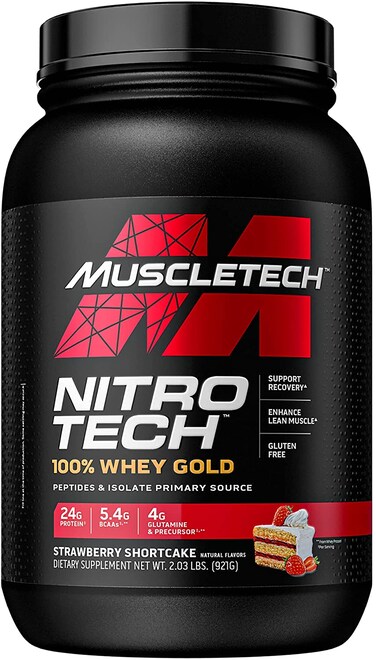 WHEY PROTEIN POWDER – MuscleTech Nitro-Tech Whey Gold features whey protein isolate and peptides, this ultra-pure, rapidly absorbed and quickly digested protein is engineered to support fast recovery, helping you build more lean musclePROTEIN POWDER for LEAN MUSCLE – Whey peptides promote rapid recovery from exercise and support an insulinogenic response for improved nutrient delivery for men & women. Builds lean muscle, increases strength and enhances performanceFAST RECOVERY – MuscleTech Nitro-Tech Whey Gold has 24g of protein, 4g of glutamine & precursor and 5.5g of BCAA for better muscle protein synthesis and recoveryABSORBS FAST and DIGESTS EASY – Nitro-Tech Whey Gold uses a superior cold microfiltration process to give you a higher quality whey protein powder byDAILY WORKOUT SUPPLEMENTS – Mix 1 scoop with 6 oz of cold water or skim milk between meals & before and after exercise. Clean ingredients. No fillers. Gluten-freeProduct Description: For more than two decades, we’ve fueled those with the strength to not just play the game, but to change it. And Nitro-Tech 100% Whey Gold expands on this tradition with an innovative take on a ground-breaking formula.
