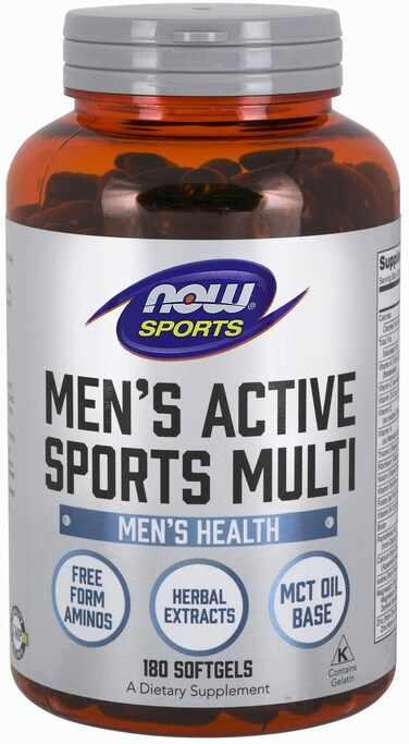 Men's Health Free Form Aminos Herbal Extracts MCT Oil Base A Dietary Supplement Kosher - Contains Gelatin GMP Quality Assured This daily multi-vitamin for active men features free-form amino acids, ZMA, tribulus, MCT oil, herbal extracts, and more. Specially formulated with high-quality ingredients that aren’t usually found in an everyday multivitamin, NOW Sports Men’s Active Sports Multi supports all levels of athletes. Competitive athletes who are regularly tested should check with their sanctioning body for the status of this supplement.