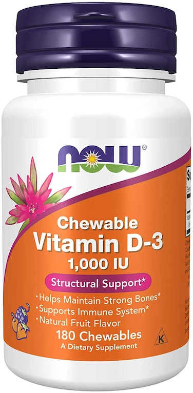 Now Foods Chewable Vitamin D-3 1000 IU - 180 Chewable Tablets Now Foods Chewable Vitamin D-3 1000 IU supplies recommended levels of this key vitamin in a tasty chewable form. Vitamin D is normally obtained from the diet or produced by the skin from the ultraviolet energy of the sun. However, Vitamin D is not abundant in food. As more people avoid sun exposure, Now Foods.