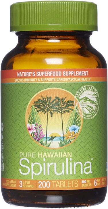 Spirulina-500mg 200 TabletNotre Hawaiian Spirulina supports eye health, immune function, healthy cholesterol levels, cellular health and increased energy.Doctors and Scientists recommend we eat five servings of fruits and vegetables a day. In real life, it doesn't always happen. That's why you need Spirulina Pacifica. Hawaiian grown natural Spirulina Pacifica supplies more concentrated vegetable nutrition than any other whole food.Spirulina Pacifica delivers:Antioxidant Vegetable Nutrition - Nature's richest source of carotenoids B-Complex Vitamins - Supplies Thiamin, Riboflavin and vitamin B-12 Iron - A daily dose provides more iron than two cups of spinach Organic Protein - Richest source in the plant world - three times that of beef GLA - Building block for nature's anti-inflammatory As a result, Spirulina is important for anyone needing additional nourishment including dieters, athletes, convalescents and the elderly. Just six tablets a day (3 grams) will help supply the nutrients lacking in most of our diets.Suggested Use As a dietary supplement 6 tablets daily. Refrigerate after opening. Take this all natural whole food with or between meals. Source of health-promoting antioxidants, vitamins and minerals. - Or as directed by your healthcare professional.Supplement FactsServing Size: 6 Tablets Servings Per Container: 33Amount Per Serving% Daily Value***Protein2 g4%Vitamin A (as Beta-Carotene)9000 IU180%Thiamin0.09 mg6%Riboflavin0.12 mg6%Vitamin B121.7 mcg30%Iron3 mg20%Sodium40 mg2%Gamma Linoleic Acid30 mg*Zeaxanthin2.4 mg*Total Carotenoids12 mg*Chlorophyll24 mg*Phycocyanin150 mg*Superoxide Dismutase1800 Units**Daily Value Not Established***Percent Daily Values are based on a 2,000 calorie dietOther Ingredients: All Natural Hawaiian Spirulina, silica, chicory inulin, magnesium stearateDoes Not Contain: HerbicideWarnings: Keep out of reach