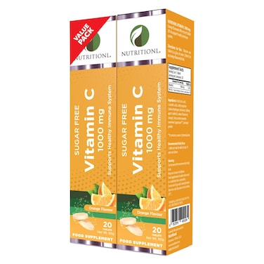 Nutritionl Vitamin C 1000mg Orange Flavour Effervescent Food Supplement 20 Tablets Pack of 2