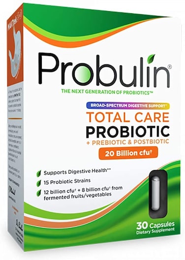 - <p>Supports Digestive Health<p>15 Probiotic Strains<p>Contains 12 billion cfu plus 8 billion cfu from fermented fruits and vegetables per capsule<p>Product Description:</p><p>Probulin Total Care Probiotic + Prebiotic and Postbiotic Capsules is a unique combination of broad-spectrum digestive support. Each capsule of probiotics includes prebiotics and postbiotics for optimum digestive care. Probulin's Total Care Probiotic features the prebiotic, which acts as food for the probiotic bacteria. This product contains 12 billion cfu + 8 billion cfu from fermented fruits and vegetables, providing spectrum support to the digestive microbiome. Postbiotic is a term used to describe the abundant and unique compounds produced by the activity of probiotic bacteria. These unique compounds participate in supporting a healthy digestive microbiome.<p>Set Contains:<p>1 Bottle of Probulin Total Care Probiotic + Prebiotic and Postbiotic Capsules 30's