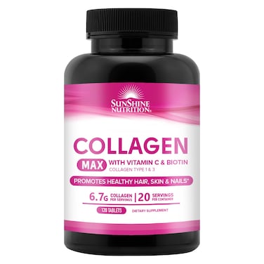 SunShine Nutrition Collagen Max with Vitamin C and Biotin Dietary Supplement 120 Tablets