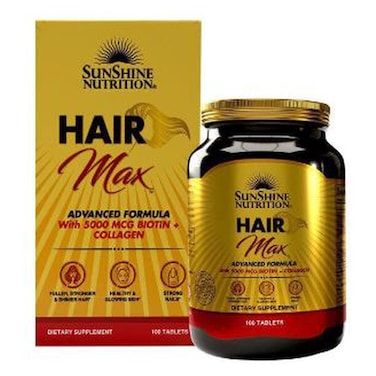 • Sunshine Nutrition’s Hair Max is a Biotin & Collagen based Advanced Formula targeted for healthy hair, skin and nails