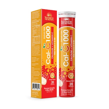 Sunshine Nutrition’s Cal-C1000 Sugar Free Effervescent tablets is formulated with Vitamin C 1000mg, Calcium, Vitamin D and Vitamin B6 to strengthen immune function and promote bone health.
