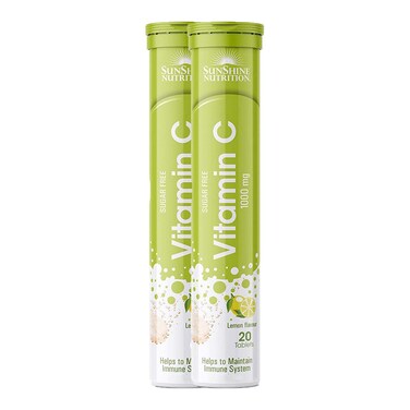 Sunshine Nutrition Vitamin C 1000mg Lemon Flavoured Effervescent 20 Tablets Pack of 2