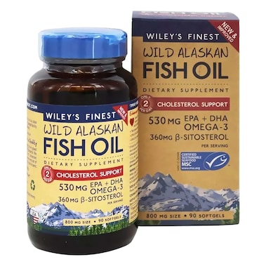 Wiley's Finest Cholesterol Support 800mg Wild Alaskan Fish Oil Dietary Supplement 90 Softgels