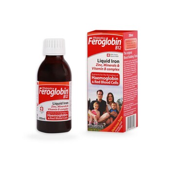 Feroglobin B12 Syrup provides a unique 'liquid Iron' tonic, to help maintain health, vitality and energy release. It delivers an optimum amount of an organic form of Iron, minerals and vitamin B12 and folic acid. With natural fruit extracts, malt and honey, it's gentle on the stomach and tastes great too.