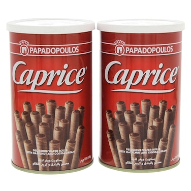 Papadopoulos Caprice Cocoa Hazelnut Wafer Rolls, 115g Pack of 2