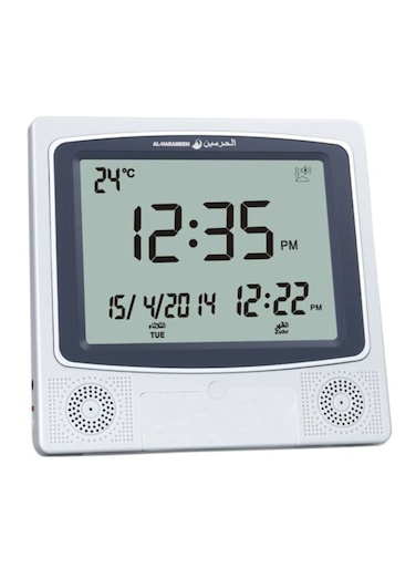 Al Harameen Digital Azan Table Alarm Clock Silver/Black