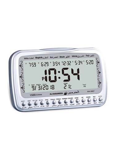 Al Harameen - Muslim Praying Islamic Azan Table Alarm Clock Silver
