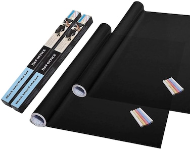- <p>LARGE SIZE: Each roll contains 17.7'' W × 78.7'' L sticky blackboard<p>HIGH QUALITY:This PVC chalkboard sticks to all smooth surfaces, quick to apply, easy to cut, residue-free removal & repositionable.<p>BONUS CHALKS: FREE 5 pieces chalk in different colors INSIDE each roll.<p>EASY TO USE: Frosted cover makes it writable with regular chalk. Great alternative to chalkboard paint & chalkboard labels.Occasions: Adhesive blackboard sticker for use in home, office, studio, cafe or restaurant, save your space and offer convenience.<p>Product Dimensions: <p>45.72 x 3.81 x 3.81 cm, 349.27 Grams<p>Color:Black Two RollsThis is a contemporary way to complement your home or business interior design. And it's funny for both kids and adults. Self-adhesive, water resistant and removable, suitable for most flat smooth surfaces without leaving residue, however a pre-test is highly recommended. Decal can be cut into smaller chalkboards or multiple decals can be combined to create a giant chalkboard. How to use it: 1:It is best to use this Chalkboard Stickerson smooth flat surfaces, DON'T apply to ROUGH and UNEVEN wall surface 2:When receiving the blackboard sticker, lay it flat for 24 hours weighing down each corner 3:Take the measurements of the place you want to stick, and cut appropriate size to fit it. :4:Clean the surface before applying the stickers onto the wall 5:Place on a smooth and non-textured surface by pushing them towards the edge with your fingers or the edge of a credit card Note: Some wall paints are designed to resist stickers, please check before purchasing. And freshly painted walls are not recommended. The texture of the wall sticker is smooth (not like a rough surface like normal classroom blackboard.) Please avoid direct sunlight, for sunlight will lead to bubbles underneath the stickers. The chalk on the board is best to be wiped off by a damp cleaning cloth, and please write when board is dry. Package including: 2 Rolls Wall Sticker 10 pcs colorful chalks . Each roll size:17.7 78.7inch YOU WILL GET 2 ROLLS FOR THIS PRICE!!