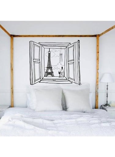 Spoil Your Wall Eiffle Tower From Bedroom Window Wall Sticker Black 75x90cm