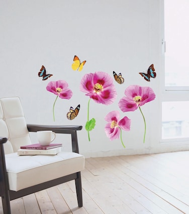 Stickieart - Butterflies And Purple Tulips Wall Decal - Medium - 50 X 70 Cm - Sta-160