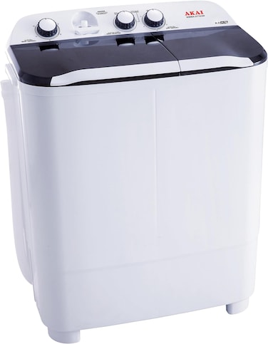 Akai 6 Kg Twin Tub Semi Automatic Washing Machine, White, WMMA-XTT62W - One Year Warranty
