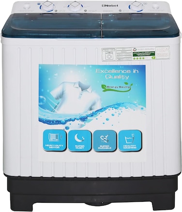 Nobel 6 KG Washing / 4.5 KG Spin Capacity Twin Tub Semi Auto Washer, Dry & Spin, 1300RPM, Air Drying, 2 Water Intet, IPX4 Waterproof Grade, NWM600RH White