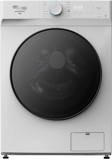 The Washing Machine: Enjoy great washing results while saving on energy consumption with the efficient washer SGW10500HD from Super General. Thanks to the ESMA 5 Star Rating, SGW10500HD is one of the most efficient and economic washers on the market. This saves you money on utility bills, is good for the environment and achieves best cleaning results. Business Outfits, Gym-Wear, Children and Baby-clothes, we got you covered! Features Child Lock, Foam Control LED Display, 15 minute Quick Wash. 15 Programs for your wardrobe: Cotton, Synthetics, Mix, Daily Laundry or delicate textiles. With a wide range of 15 programs, you ensure optimal care for your personal and home-textiles. Wash your active-wear, yoga-leggings and breathable sport-shirts gently. Give bed-sheets, towels, bath-mats a thorough deep-clean for optimal hygiene. From gently washing clothes of wool, cotton, silk and fine materials to thoroughly cleaning your sportswear after workouts - YOU have the CHOICE! Value for Money: We focus on durability, efficiency and ease of use of our Home Appliances! In addition to the 10 kg washing-capacity, this Front-Loader is equipped with a hidden LED-Display, 15 programs for clothes and home textiles, a self-clean and delay-function and a child-lock for optimal safety in your household with children! With 1500 RPM, this energy-efficient washer cleans all textiles thoroughly and with great care so your textiles stay in shape and last long! Powerful Performance, highly efficient: Our Front-Loading-Washer SGW10500HD achieves great washing results while keeping energy and water-consumption low! Efficient hygiene at low cost are achieved with this machine that uses only 175 KWh annually and about 13114 liters of water. With a loading capacity of 10 kg it is great for single households, small families or as additional washer for big family households. 1400 RPM ensure that all textiles can be cleaned often and with great care!