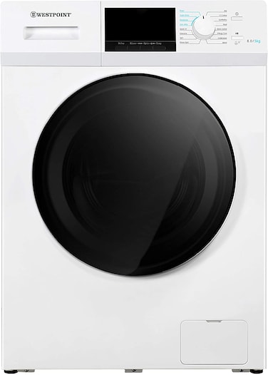 Westpoint Washer & Dryer Inverter Front Load 8/5 KG 1400 RPM White WDMT-81420E Delayed Start 3-24h Quick Wash 15min 12 Washing Programs 4 Drying Programs Door Outer Frame with Chrome