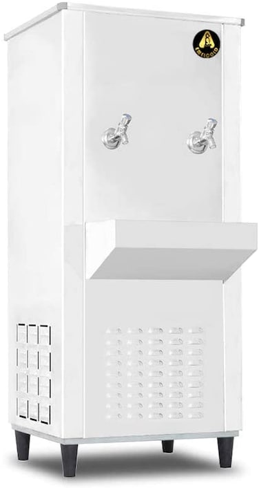 The copper tube around the tank is flattened so that the surface of the tube touching the water tank is increased by 70%. Also, Conductive Aluminum paste is placed between the tube and surface of the tank increasing the efficiency of the water cooler by 70%. As consumed as the water is cooled much faster.