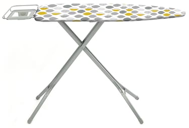 Make ironing quick and easy with this sturdy, adjustable and foldable ironing board. It is ergonomically balanced, with heavy-duty wide legs and anti-skid bootlegs for added stability. The mesh top surface helps glide your iron smoothly, without sticking to clothes. It also features an iron rest that can hold your iron safely in between. Adjust this ironing board as per your comfort and fold it to store it while not in use. Size: 122X45 cm