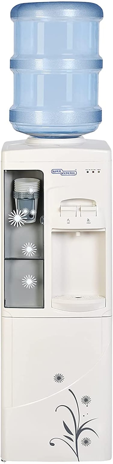 Super General Hot And Cold Water Dispenser, Water-Cooler With Cabinet And Cup-Holder, Instant-Hot-Water, 2 Taps, Sgl 1171, White/Grey, 31.2 X 32.5 X 96 Cm, 1 Year Warranty