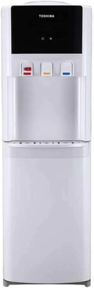 The Water Dispenser Sleek and stylish, the Toshiba RWFW1766TU XL Water-Dispenser provides instant hot and cold water with cup-push to release design. High-quality water-tank withstands heavy gallons of water. Thanks to the light-weight construction and modern design, this efficient water-cooler can be placed everywhere in the home, office, gym, studio, restaurant, bar, hotel or shop. In a nice, white and a semi-glossy finish. Toshiba brand logo in blue.