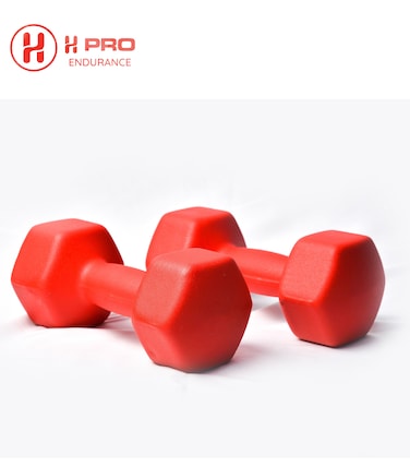 H Pro Neoprene Coated Hand Weight Dumbbell Pair, Strength Training Weight For Exercise & Fitness, 4Kg Comes In Red