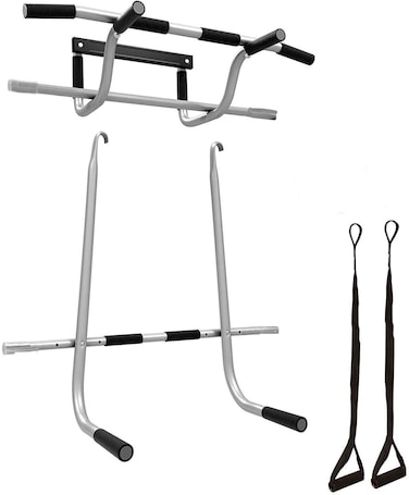 H PRO Triple Door Gym Ultimate 3 in 1 Doorway Trainer Raised Height Pull Up Bar, Dips Bar & 2 Suspension Straps for A Total Body Home Workout, Screwless Installation On All Doors