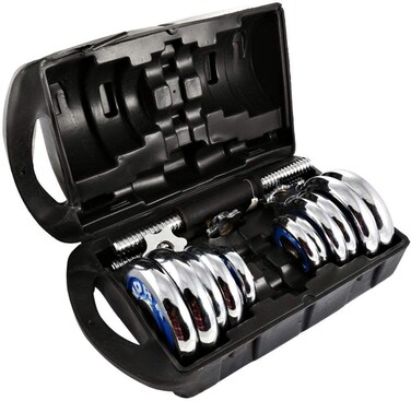 Max Strength 20Kg Cast Iron Dumbbells Set Adjustable Chrome - Hand Weights Handlebar Weight Lifting Gym Training Free Carrier Box