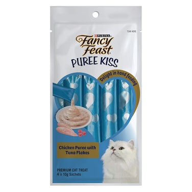 Purina Fancy Feast Puree Kiss Chicken Puree with Tuna Flakes Cat Treat, 10g Pack of 4