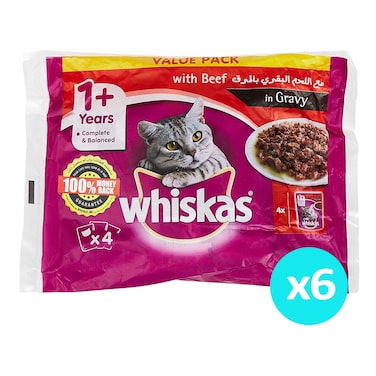 Whiskas Beef Flavour in Gravy Wet Food for Cat, 1 Years and above, 80g Pack of 6