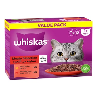 - Whiskas Meaty Selection features a mouth-watering blend of chicken and beef liver, ensuring your cat enjoys every meal