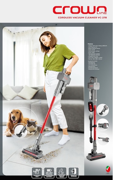 Crownline VC-278 Cordless Stick Vacuum cleaner, 29.6V, Lithium Battery: 2000mAH, Dust capacity: 0.5L, 350W
