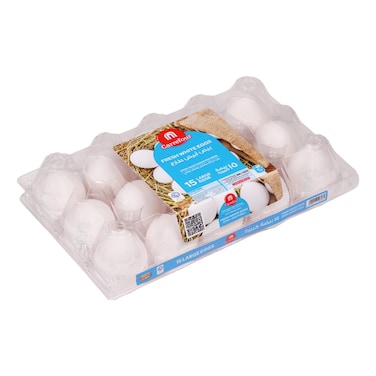 Carrefour Fresh White Eggs, Large, 15 PCS