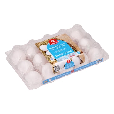 Carrefour Fresh White Eggs, Medium, 15 PCS