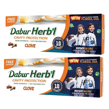 Dabur Herbal Cavity Protection Clove Toothpaste With Toothbrush 150g Pack of 2