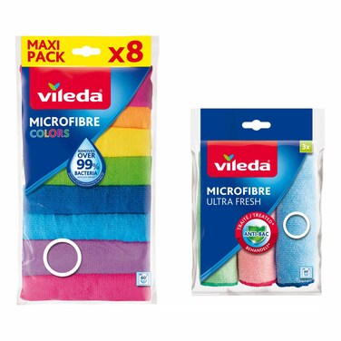 Vileda Microfibre Colours Cloths Pack of 8 and Microfibre Ultra Fresh Cloths Pack of 3