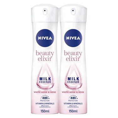 Nivea Beauty Elixir Deodorant Spray With White Mask And Rose Scent Clear 150ml Pack of 2