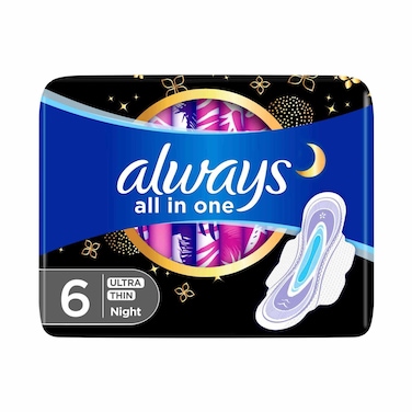 Always All-In-One Ultra Thin Night Sanitary Pads With Wings White 6 Pads