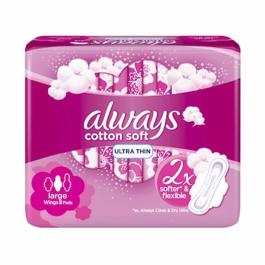 Always Cotton Soft Ultra Thin Large sanitary Count with Wings 8 Pads