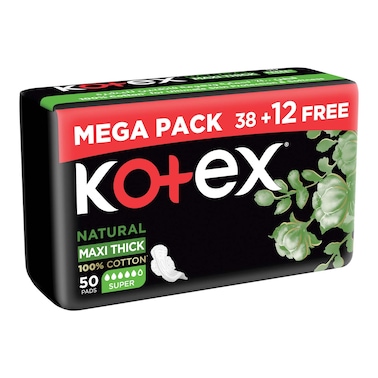 Kotex Natural Maxi Protect Thick Pads 100% Cotton Pad Super Size With Wings 50 Sanitary Pads
