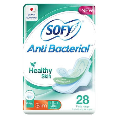 Sofy Anti-Bacterial Original Slim Sanitary Pads With Wings Large White 28 Pads