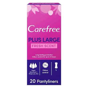 Carefree Plus Large Fresh Scent Panty Liners super absorbent White 20 Liners