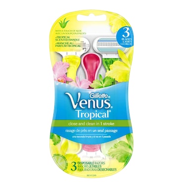 - Gillette Venus Tropical women's disposable razors come in bright colours and with tropically scented handles