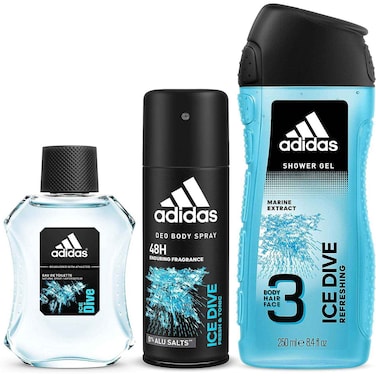 Adidas For Men Ice Dive Eau De Toilette 100 ML + Shower Gel 250 Deodorant Body Spray 150ml