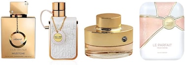 Armaf Perfume Signature Collection 4 Piece Set For Women: Club De Nuit Milestone EDP 105ml + Tag Her Pour Femme EDP 100ml + Pour Femme Le Parfait EDP 100ml + Vanity Femme Essence EDP 100ml