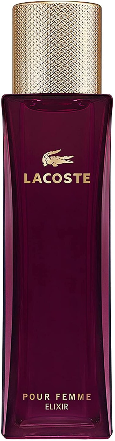 Product Description: An Infinitely Feminine Elixir. Lacoste Pour Femme Elixir is a unique and sophisticated perfume which enhances the quintessential femininity of the French Fashion House. Reminiscent of the silhouettes of the Lacoste wardrobe, this new fragrance for women is bold, inimitable and instantly identifiable. Designed and tailor-made for hedonistic and confident women, it triumphs without arrogance, mixing assurance with mastered elegance. It is the dream partner for women who dare to live their life to its fullest. In this original composition, delicate rose gives way to opulent and sensual white flowers. In the heart, a generous bouquet of Brazilian Gardenia mixes with the powdery notes of purple heliotrope and Jasmine Sambac. Radiant and addictive, this combination is enhanced in the top notes by fresh jasmine petals and elegant, sparkling pink peppercorn and mandarin orange. Finally, the scent melts into a sumptuous tuberose, boosted by a wooden elixir accord intertwined with vetiver and enveloped in vanilla.
