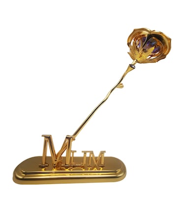 24K Gold Plated Rose Artificial Flowers Gold Dipped Rose with MUM Sign Stand