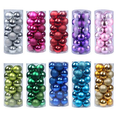Generic-24pcs/lot 3/4/6cm Christmas Tree Decor Ball Bauble Xmas Party Hanging Ball Ornament Decorations for Home Christmas Decorations Red 4M