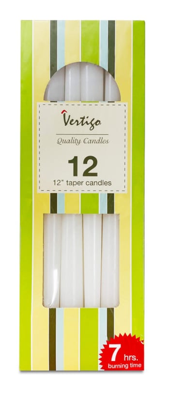 White Taper Candles 12in 12Pcs/Box